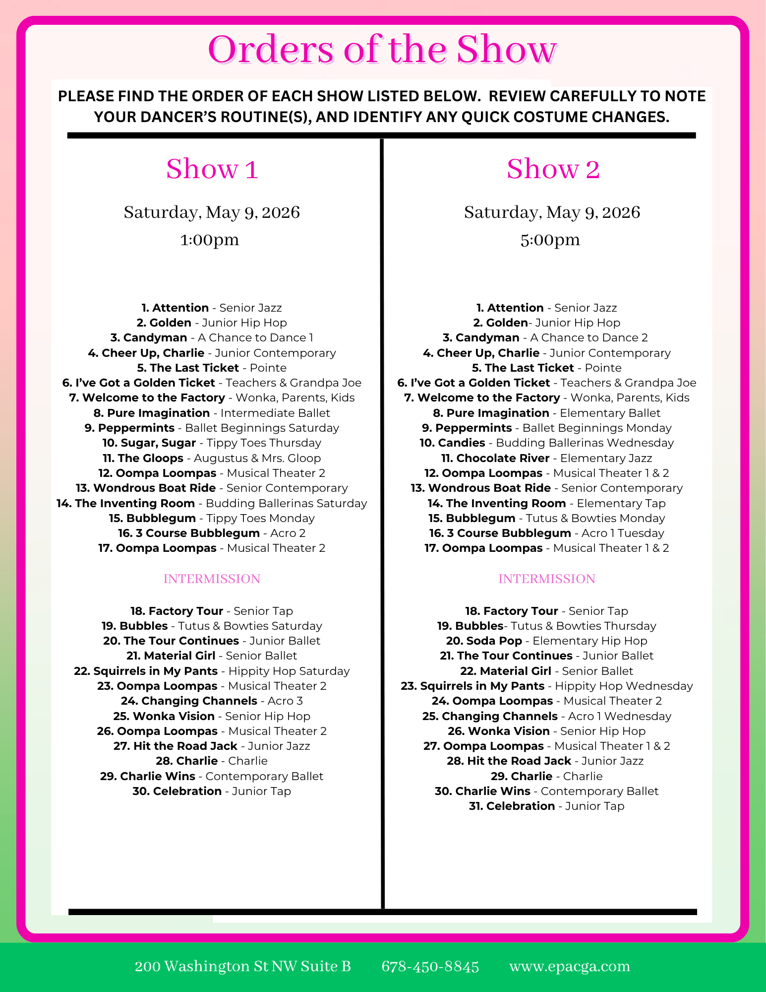 Year-End Show Info